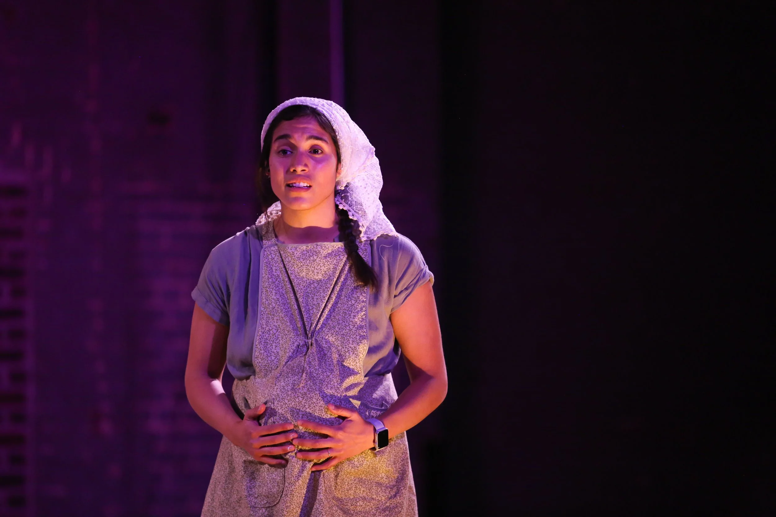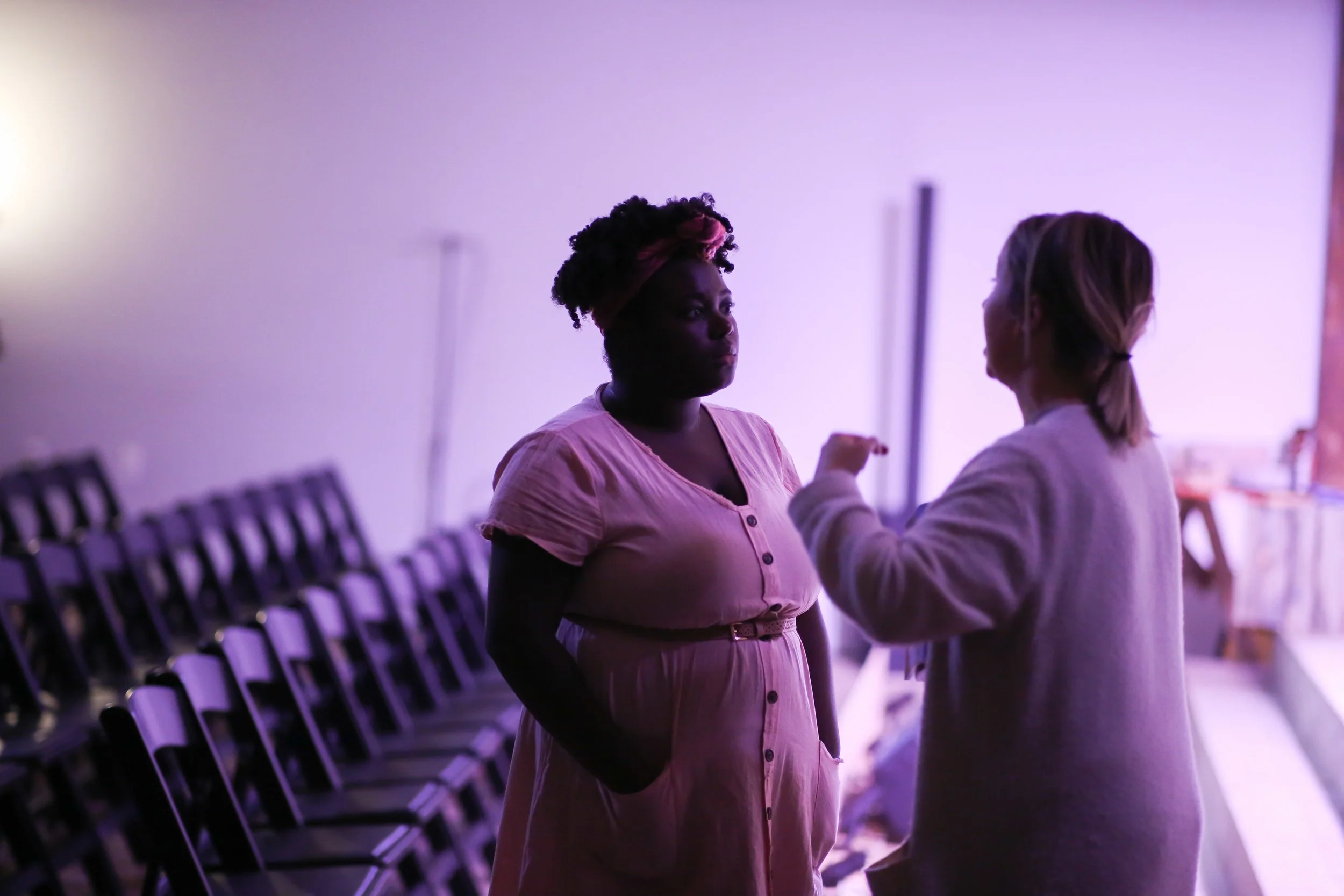 Dir. Amelia Peterson discussing notes with Kaylor Demi Green playing Mary